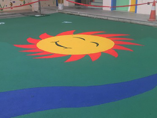 幼兒園塑膠場地膠面的實(shí)鋪厚度,從膠面底至表面層膠粒的中心,一般按兩方面控制,首先通過立模進(jìn)行預(yù)檢,對基層局部高出的地方進(jìn)行修砍或錘擊夯低,如高出不多,修整時采用刮尺上加卡具,離模刮漿,來保證鋪裝厚度。